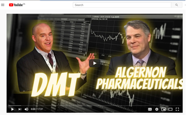 Algernon CEO Christopher Moreau and Consultant Dr. David Nutt Discuss the DMT Stroke Program on BioPub Webcast Hosted by Dr. KSS MD, PhD